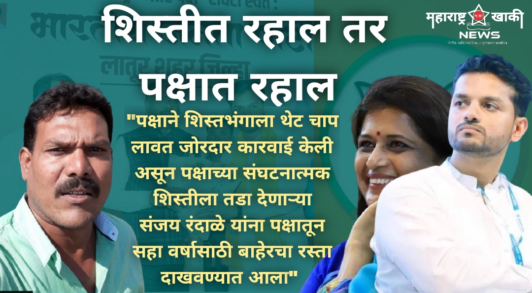 महाराष्ट्र खाकी (लातूर / विवेक जगताप ) – लातूर शहर महानगरपालिका सार्वत्रिक निवडणूक २०२६च्या पार्श्वभूमीवर भारतीय जनता पक्षाने शिस्तभंगाला थेट चाप लावत जोरदार कारवाई केली असून पक्षाच्या संघटनात्मक शिस्तीला तडा देणाऱ्या संजय रंदाळे यांना पक्षातून सहा वर्षासाठी बाहेरचा रस्ता दाखवण्यात आला आहे.
