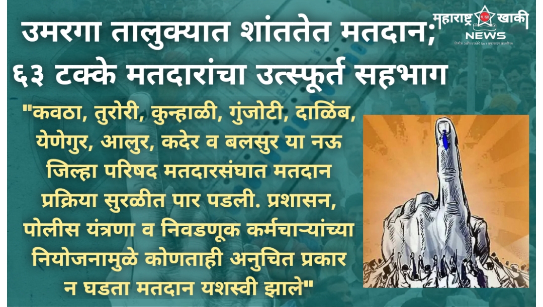 महाराष्ट्र खाकी (उमरगा / विवेक जगताप ) – उमरगा तालुक्यातील ९ जिल्हा परिषद गट व १८ पंचायत समिती गणाच्या निवडणुका लोकशाही मूल्य जपत शांततेत पार पडल्या. महायुती व महाविकास आघाडी यांच्यात झालेल्या या निवडणूक प्रक्रियेत मतदारांनी उत्स्फूर्त सहभाग नोंदवत एकूण सरासरी ६३ टक्के मतदान केले. जिल्हा परिषदेच्या ३१ तर पंचायत समितीच्या ५३ उमेदवारांचे भवितव्य आता ईव्हीएममध्ये सुरक्षित झाले असून याचा निर्णय सोमवारी (दि. ९) जाहीर होणार आहे.