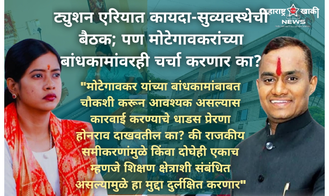 ट्युशन एरियात कायदा-सुव्यवस्था राखण्याबरोबरच बांधकाम नियमांचाही कठोरपणे अंमल होणे आवश्यक असल्याची भावना नागरिक व्यक्त करत आहेत. त्यामुळे मोटेगावकर यांच्या बांधकामांबाबत चौकशी करून आवश्यक असल्यास कारवाई करण्याचे धाडस प्रेरणा होनराव दाखवतील का, की राजकीय समीकरणांमुळे किंवा दोघेही एकाच म्हणजे शिक्षण क्षेत्राशी संबंधित असल्यामुळे हा मुद्दा दुर्लक्षित करणार, असा थेट प्रश्न नागरिकांकडून उपस्थित केला जात आहे.
